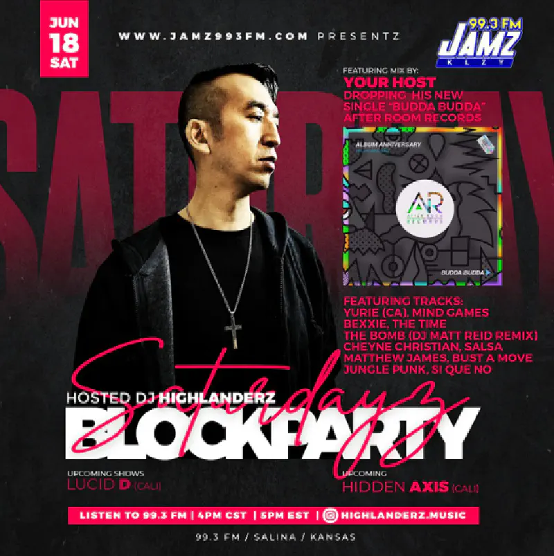 DJ Highlanderz is on FM Radio everyweek, with his show “Saturdayz BlockParty” on Jamz 993 FM base in Salina, Kansas (https://www.jamz993fm.com/), Jamz reaches 2 million listeners every weekend. His first official house track was on S & S Records Chicago, Subsolar Music of New York, Rythm and Culure of Spain, and Phunk Junk Records of Chicago. He studied music at Toolroom Academy UK, and is in the Cosmic Academy Artist Development Program.